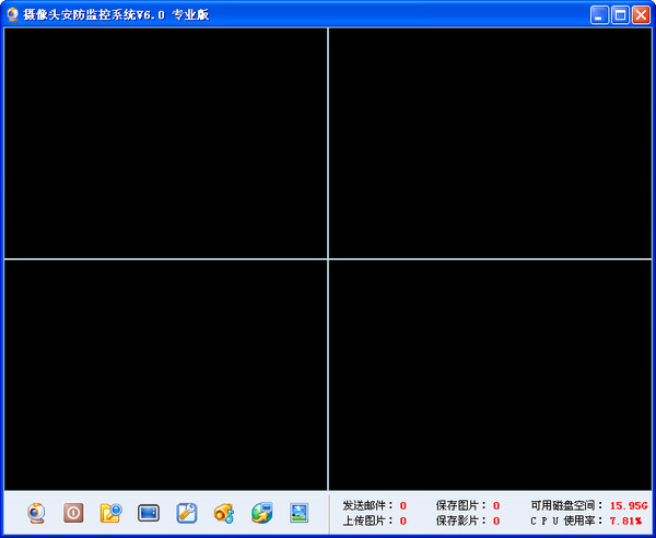 系统状态控制栏实时的显示当前的发送的邮件数量、FTP上传图片的数量、保存动态画面的数量及磁盘的可用量等等。