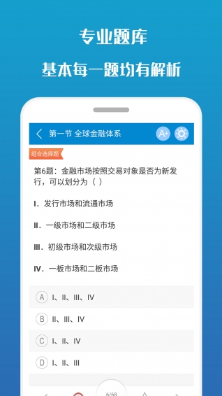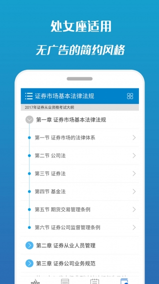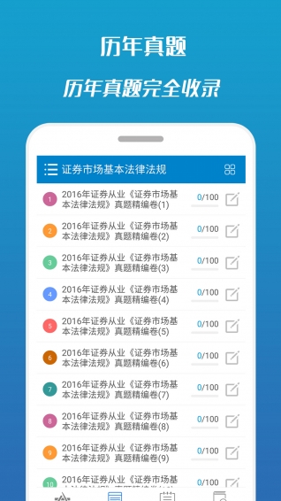 2017证券从业考试app是一款用于证券从业资格考试的学习软件。包含《金融市场基础知识》和《证券市场基本法律法规》两门考试科目的练习题目。【软件特色】