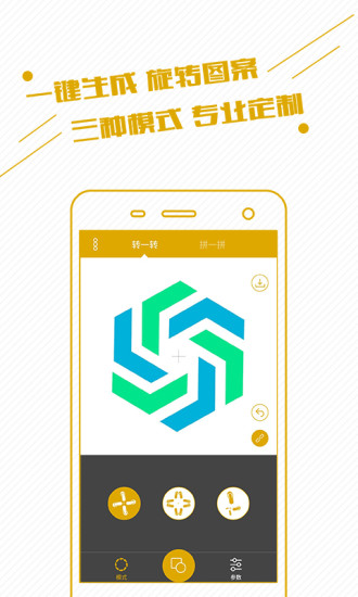 旋转,logo设计中常见的旋转对称构图,在享受作图乐趣的同时让你实时看到千变万化的旋转效果。三种旋转方式任选,黄金螺旋信手拈来。彩蛋:转转转后试试解锁键,不一定完全对称哟。