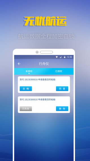 我们保证:航行数据加密自锁:加密航行状态及可视化过程数据,船主不同意,谁也看不到