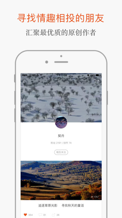 【兴趣交友】- 人文旅行、风光摄影、户外运动、骑行自驾、诗歌散文、艺术绘画……各种兴趣圈全部免费开放。结识同道好友,互相交流学习,作品更有机会得到达人大咖的认可与转发。