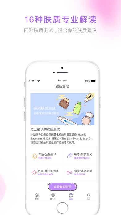 肤质测试精准匹配16种肤质,美妆点评、护肤社区还有同肤质最爱的化妆品推荐。