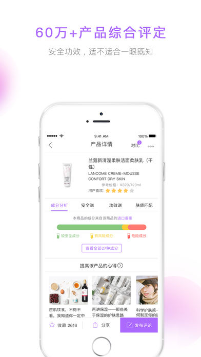 美妆彩妆达人、化妆品行业大咖和资深配方师对产品的功效、成分等详细点评。