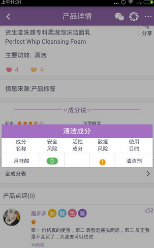 美丽修行上面的成分进行了标签备注,这样更方便大家的查询,经过测试多款化妆及护肤品的查询,显示的成分结果与其他数据来源的查询结果相一致,所以美丽修行app的查询值得信赖!