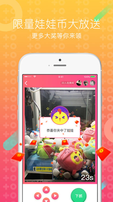 远程在线抓娃娃——拥有双侧摄像头,可自由切换方向,还原真实的线下娃娃机体验。线上直播——不只是围观吐槽,自己也能神级操作尽收666。
