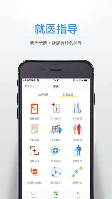 「就医保障」-- 就医前、就医中、就医后的绿色通道服务,帮助您快捷、高效的对症就医,减少就医路上的曲折就医策划、导医陪诊、就医协调、手术住院协调、专家会诊协调、国际会诊、国际转诊
