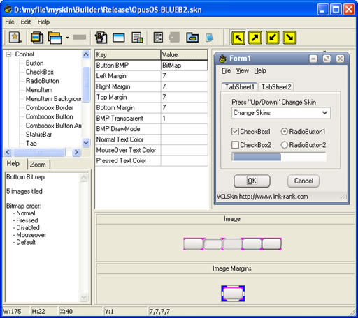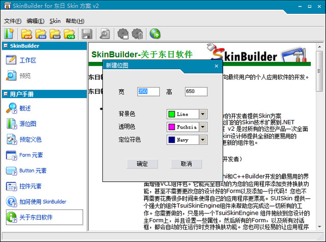 SkinBuilder是一款专门为Vclskin设计的图面皮肤编辑器,能够完全自动的为您的应用程序添加支持换肤功能,甚至不需要更改您的设计好的Form以及添加一行代码。【软件特点】