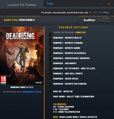 丧尸围城4十三项修改器是一款针对《丧尸围城4》所推出的游戏作弊器。这款丧尸围城4修改器可进行无限生命、无限弹药、无限金钱等13项操作辅助,让你更轻松玩游戏!【按键说明】