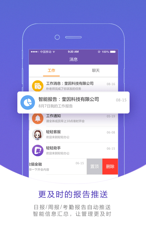 跟踪同事任务进度保证质量;多人协同移动办公。