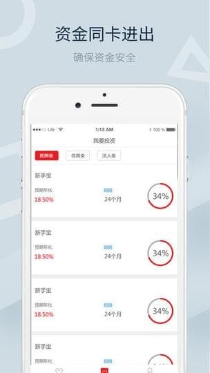 【风控严格,安全有保障】资金同卡进出,确保资金安全,投资产品到期后,客户本金利息将返回到账户余额,可再次投资亦可提现,资金流转透明可监控。最大化保障您的本息安全,降低投资风险保障投资人利益,理财安全更省心。
