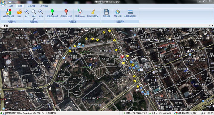 13.本软件下载地图的功能强劲、便捷,支持各种大小级别的下载保存,既有分散的局部地图,也有全图拼接的整体,随意选择,分辨率高,针对性强,为地图的以后使用提供极大便利。