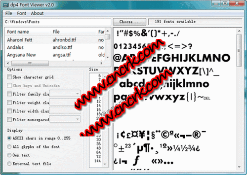 dp4 Font Viewer 是一款Window平台下显示指定文件夹下所有TTF字体的实用工具。它体积小巧、免费使用、无需安装、浏览速度快,还具有基本的字体管理功能和打印功能
