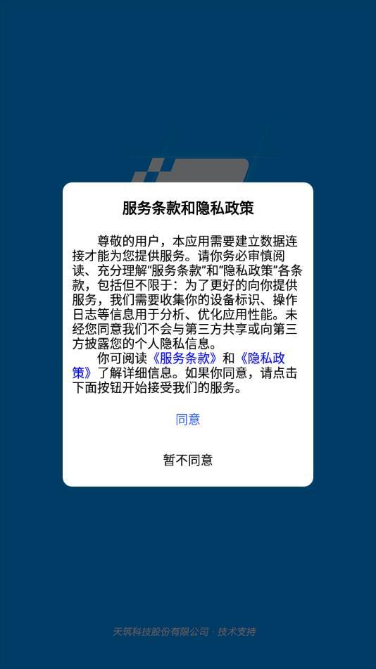 1. 安装软件后进行打开操作,点击同意服务条款与隐私政策。