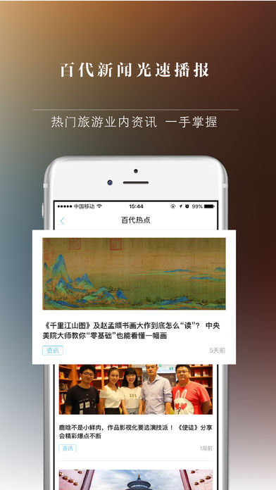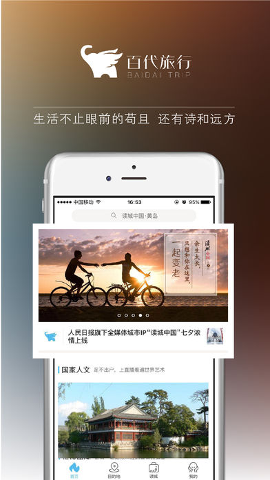百代旅行,由人民日报旗下人民网与《国家人文历史》杂志社共同打造,是专注于全域旅游信息化的移动客户端。整合人民日报内部各类旅游资源,实现人民旅行品牌在移动互联网端的充分延伸。人文、深度、精选、诚信,百代旅行致力于呈现高品质出行指引。详实收录每一个目的地的独特气质,满足你对品质旅行的全部想象与追求。