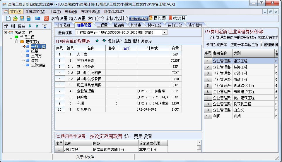 2、简单设置取费条件,一步完成整个工程所有费用的取费工作,大大提高工作效率;