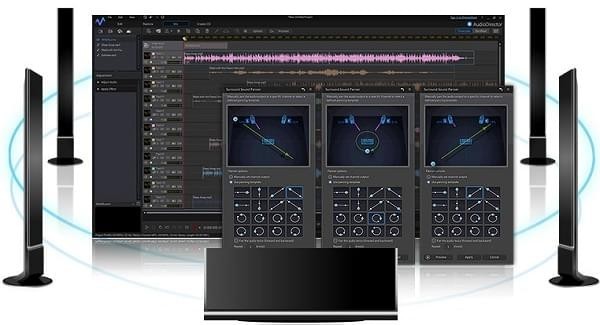 快速自视频片段截取背景音乐,并另存为环境音模板,以便套用于其他视频,让听觉呈现有一致性。提供全方位录制设定,包含循环录制、倒数计时等多样化功能。制作7.1声道、192kHz以及32位的清澈音效,真实听觉完美呈现。运用智能音场处理器,轻松打造高传真三度空间环绕音效。