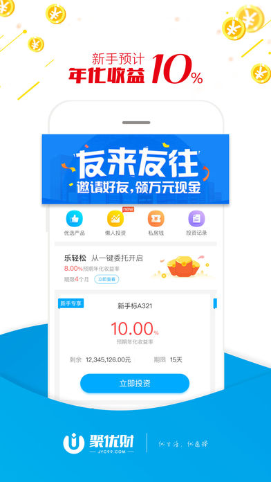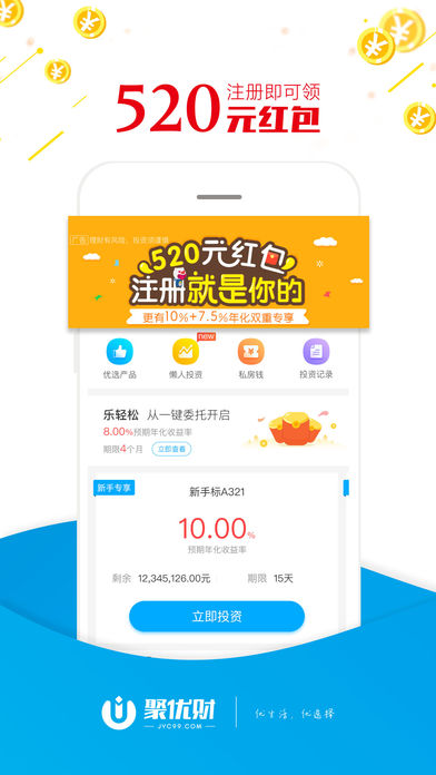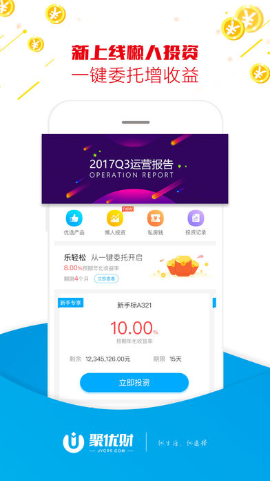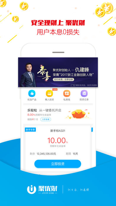聚优财是原聚有财升级版投资理财平台,旨将更优的产品,更优的体验服务于投资理财用户。聚优财率先响应存管要求,全面接入银行存管。全面实现了平台自有资金与用户资金完全隔离,切实保障投资人资金安全。