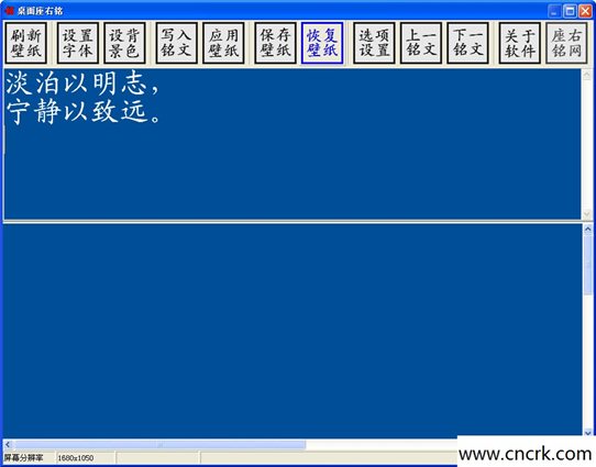 桌面座右铭(把座右铭写到桌面壁纸上)V1.2.1 简体中文绿色免费版 每个人都有一个人生座右铭,以时刻勉励自己。桌面座右铭能把你的人生座右铭放在电脑桌面,提醒你谨记