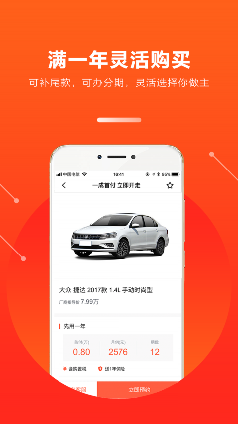 满1年可付尾款全额购买,也可分期3年购买