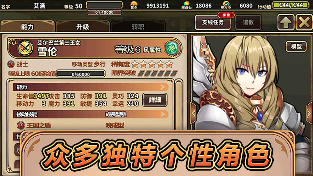利用掉落的碎片可以强化技能并让角色提升星等。