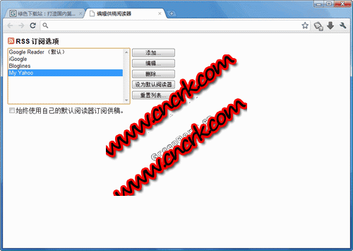 为谷歌浏览器(Google Chrome)提供自动发现页面RSS源的扩展插件,点击可以预览RSS源的内容。预设了4个阅读器,你可以自行填加。 提示:下载后得到.crx扩展名的文件,使用Chrome打开安装即可
