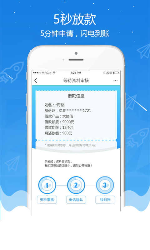 1.极速贷款:5分钟申请,审核通过后,5秒即可到账2.利率更低:月利低至0.99%,低于行业平均利率的一半