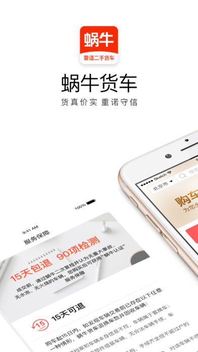 【买车】利用旗下二手货车交易市场,为购车用户提供真实可靠的海量无事故车源。官方认证检测确保车况真实,认证车源7天内检测不符全款退车,远离事故车拼装车【卖车】蜗牛货车先行赔付,与可靠的检测团队为车况背书,专业的营销团队确保覆盖范围,商用车卖的更快更舒心