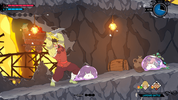 手绘的二维动画人物和怪物。四个厨师都有自己的简短的活动,为每个人物的个性和美食。