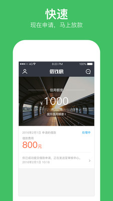 借钱快app v2.9 安卓版 借钱快app是由深圳二木科技推出的一款小额借钱神器,该软件为资金周转困难的用户提供500-5000元的小额信用贷款,您只需要在手机上填写相关资料就可以获得贷款额度,轻松走出没有钱用的窘境。