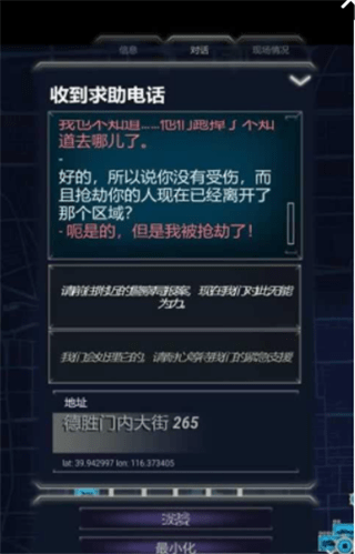 在这款游戏中, 你是一名需要快速处理各种警情和险情的接警员。你不只需要接听求助电话,你还需要对险情作出适当的处理,比如提供急救指导,亦或是在需要警方,消防人员,急救人员到场处理的情况下,合理分配警力。别忘了,电话那头的可能是一位面对自己奄奄一息女儿,心急如焚的父亲,或是一名意图不明的恐怖分子,甚至也可能只是想弄个大新闻的恶作剧小鬼。急难当头,你,如何抉择?游戏内声誉为无限,快来下载吧!
