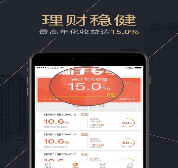 1 高收益率:新手预期年化收益15%2 灵活理财:15天-180天理财周期自由选择