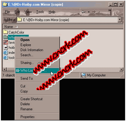 在Windows下,也许你会经常在删除文件时得到“文件正在被调用,无法删除”之类的提示,可以在菜单中找到“Who Lock Me?”的选项,能过点击它,就可以看到谁在调用文件了,再按kill process将程序关掉