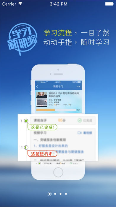 1、移动学习,随时随地在线学习平台,海量的学习资源。企业员工可以在线学习先之课程(scorm课程除外)。