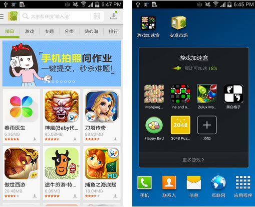 安卓市场一直本着为用户推荐好应用的宗旨,伴随广大智能手机用户走到了第5个年头。如今的安卓市场已经变成Android手机淘应用的好平台。近期发布的安卓市场V4.3.6版本,以全新的UI界面、丰富的专题内容、更多实用的功能,再一次实现蜕变。