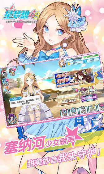 《星梦想48》以真人的外貌和性格特征为蓝本,设计了每位成员独一无二的外形和动作。成员真人配音,只需轻轻触碰一下游戏人物,生动语音就能让你仿佛身临其境,与偶像零距离对话。或卖萌或高冷,带来耳边细语般的梦幻体验。