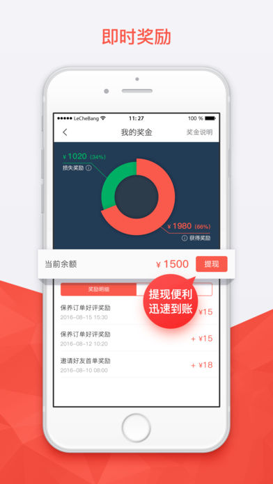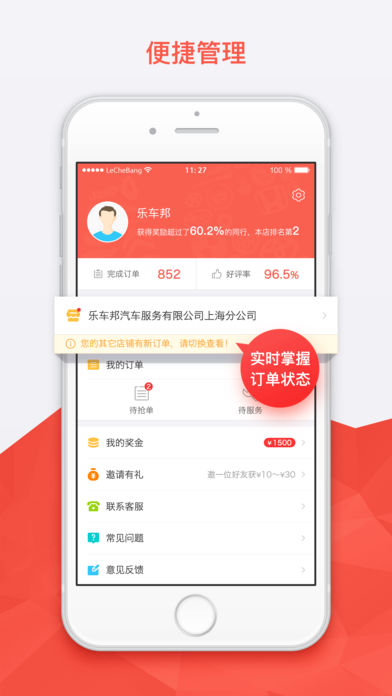 高效完成商户对车主的服务,优质服务即刻获得乐车邦奖励