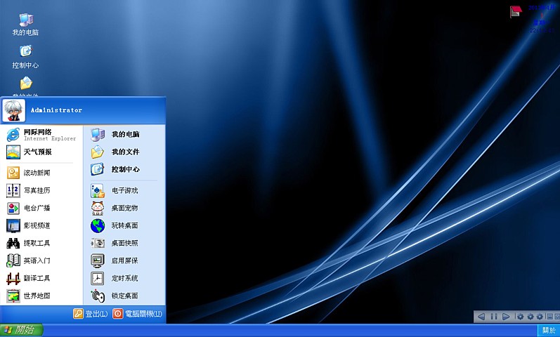 WinDesking外虎桌面王官方版有专门的网页资源提取工具,能提取网页上的所有资源,比如图片,音乐,电影等音视频文件; 有在线翻译机,能进行各种语言相互转化; 有迷你收音机,能接受各种国内外华语电台的节目; 有新潮的照相机,能进行远景和近景拍照并有预览功能; 有最新的P2P流媒体播放器,可在线观看各种娱乐频道,电影,电视等最新最热门节目; 有桌面时钟,万年历,世界地图,有最漂亮的桌面,有最可爱的桌面宠物,有最漂亮的屏保并带有锁定功能; 还有最经典的游戏。【功能介绍】
