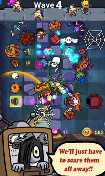 各位!又是万圣节!所有邻近的小朋友又来抢糖果了!作为恐怖鬼屋的主人,你又怎能让他们轻易得手呢!马上用所有的吓人道具吓跑他们吧!遊戏总共有81种不同的道具等你解锁!