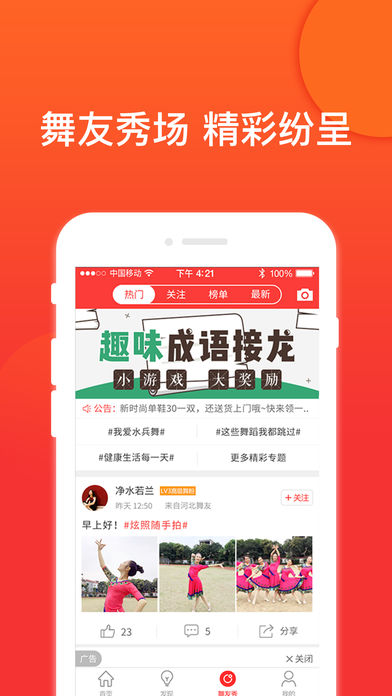 “舞友秀”轻松拍摄,一键发布,让您与广大舞友共同分享生活中最精彩、美丽的一刻