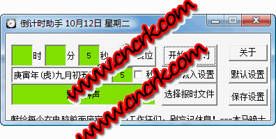 方便的实现倒计时提醒、设置可保存、提示时自动弹出、自选提醒铃声等功能,为每天奋斗在电脑面前的朋友们量身定制,尤其是一边上网一边做饭很合适!