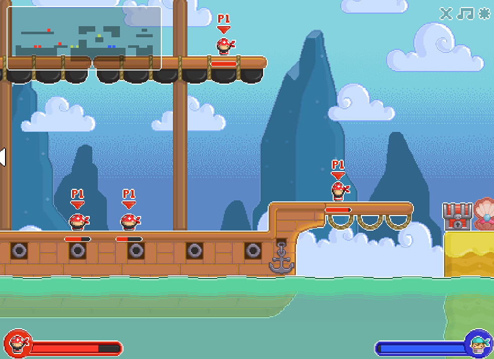 凡处于较低位置的海盗都会受到伤害。必杀技,会减慢速度HP。