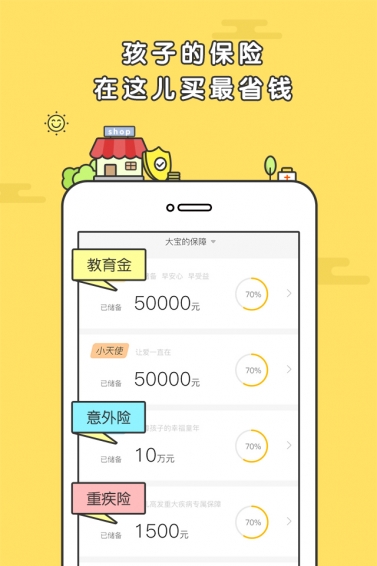 1、春芽:超便宜。一次性交费,保障孩子到18周岁,10万保障只需400-800元,覆盖66种重疾病种,确诊给付。2、小天使:免费领取。开通了宝贝存钱罐的父母可以免费领取小天使,相当于为自己增加了一份长期意外保障,当意外发生的时候,身故理赔金会存入宝贝存钱罐,延续父母对孩子的爱,保障孩子的未来。