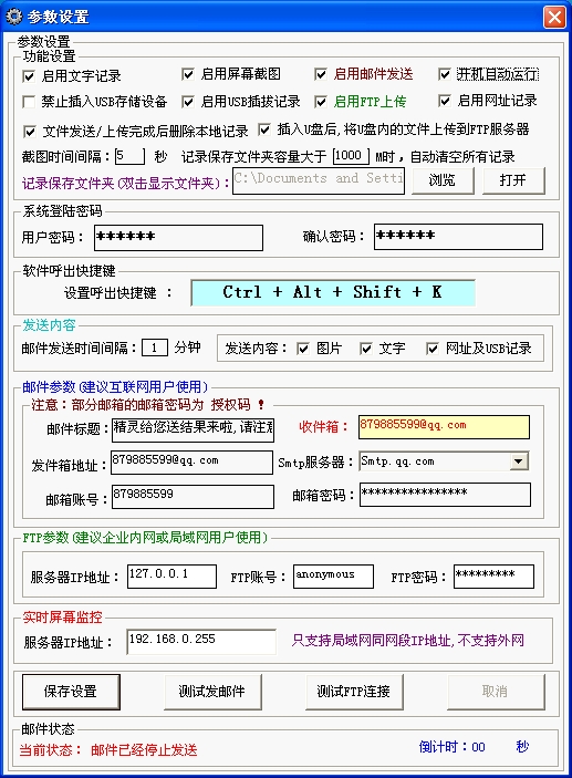 3、能定时将记录下来的图片及文本发送到您指定的邮箱中。