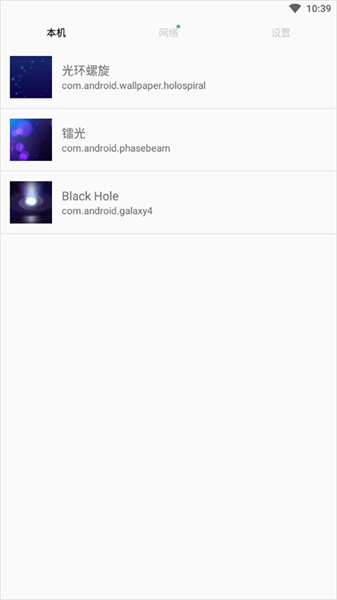 【完全模式】呈现壁纸预览图或应用图标,并且展示应用名称与包名。轻点即可进入壁纸预览,长按则能直接开启壁纸程序。