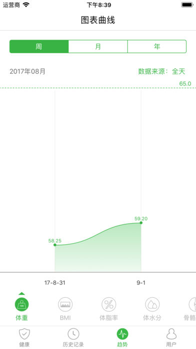 当您使用“天天轻”支持的智能设备测量后,体重、体脂率、去脂体重、身高体重指数(BMI)、身高和静止时消耗的卡路里数据将会同步到HealthKit中。