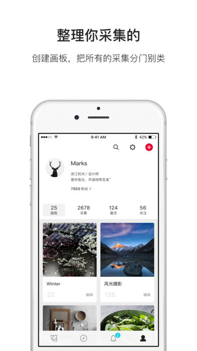 - 创建自己的画板,整理和展示你的采集,让别人更了解你。