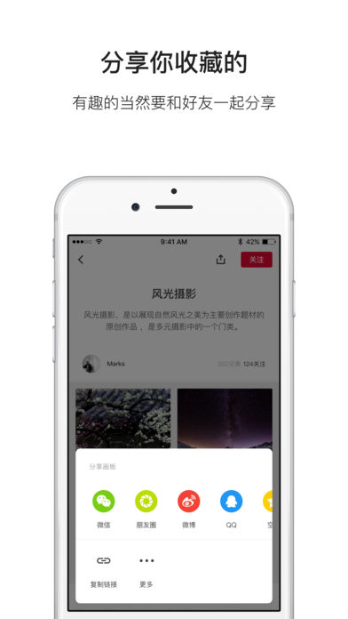 - 通过微信,微博等分享你喜欢或收藏的内容,将此刻的灵感传达给好友。