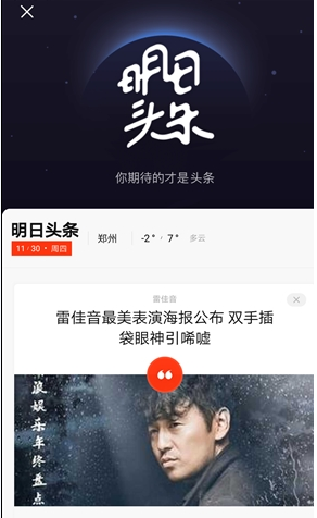 4、明日头条不仅仅是用户期待性、延续性阅读的入口,也将是商业、科技、时尚、娱乐等领域合作伙伴举办重大活动、发布预热消息、专题延续的平台。