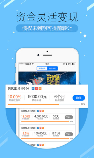 2. 债权转让:用户可通过贝通网债权转让功能,出售投资标的债权给其他投资人,实现资金变现。
