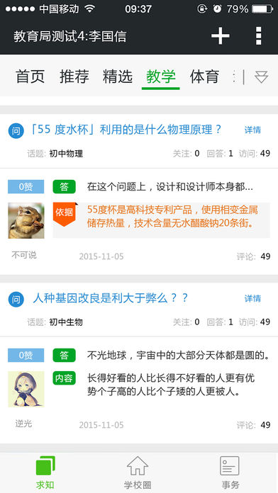4、求知问答:由官方组织各方面专业人才建立的求知问答互动平台,为平台所有用户提供丰富的课堂内外知识。